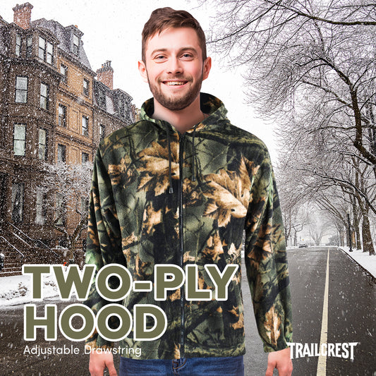 TrailCrest by Treel Men's Camo Polar Fleece Plush Bathrobe - with Shawl Collar