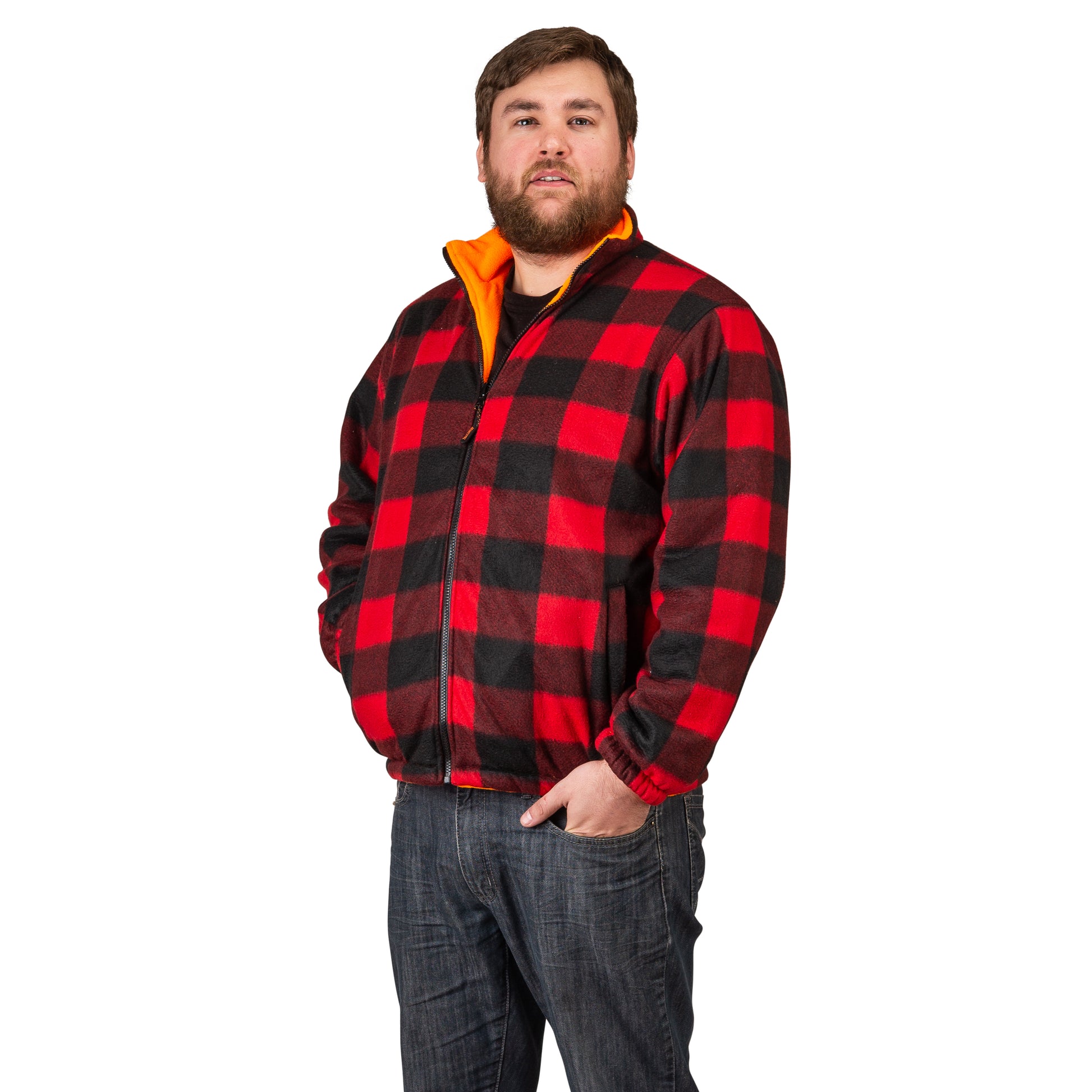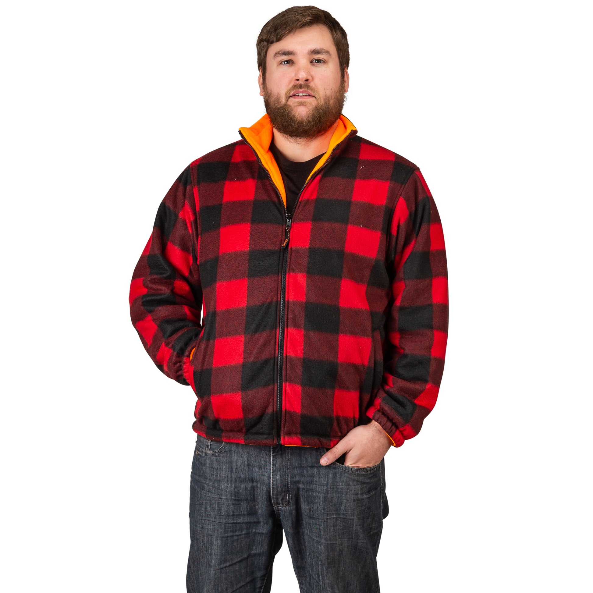 - SAFETY FIRST- CHOOSE YOUR VISIBILITY: These extra heavy reversible fleece jackets are just what you need, featuring a vibrant blaze orange on one side and stylish red plaid on the other.