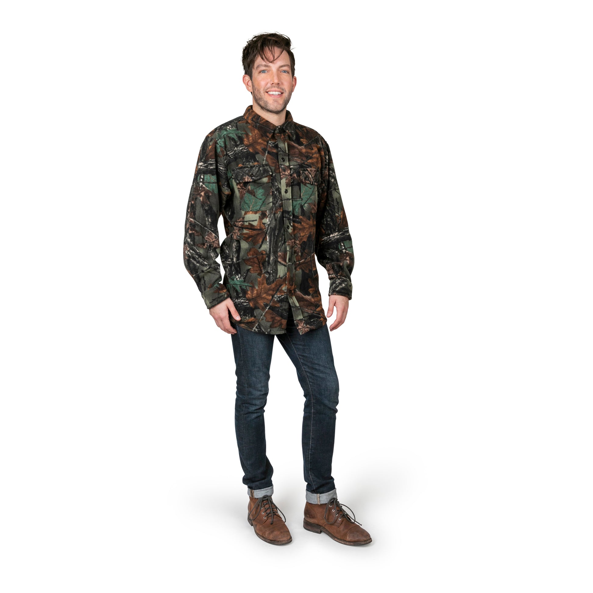 TrailCrest by Treel Mens Camo Fleece Button Up Hunting Shirt