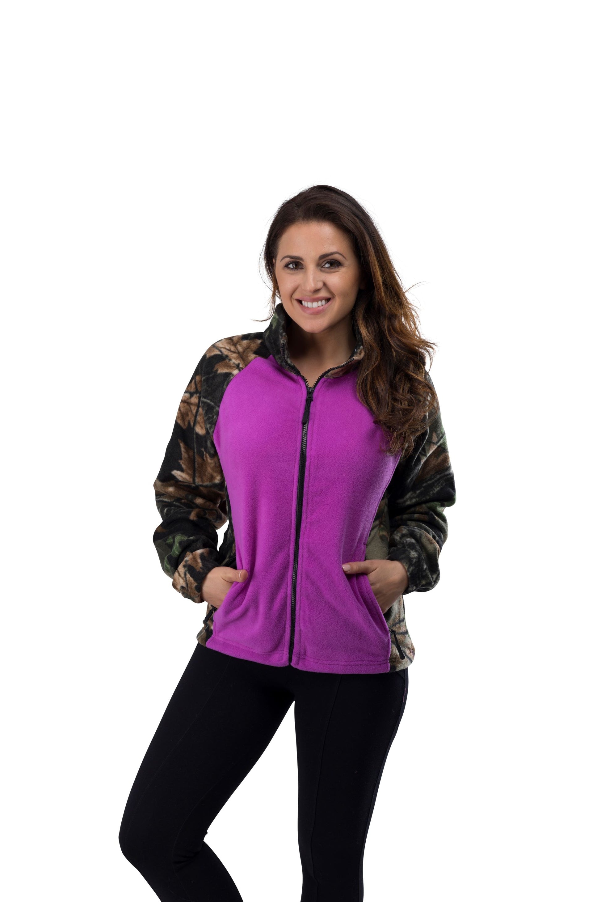 TrailCrest by Treel Women’s Fleece Semi-Fitted Full Zip Long Sleeve Camo Cardigan Jacket